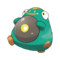 Its face has silver eyes with thin eyelashes, and a large mouth with two square teeth-like growths on the upper lips. On top